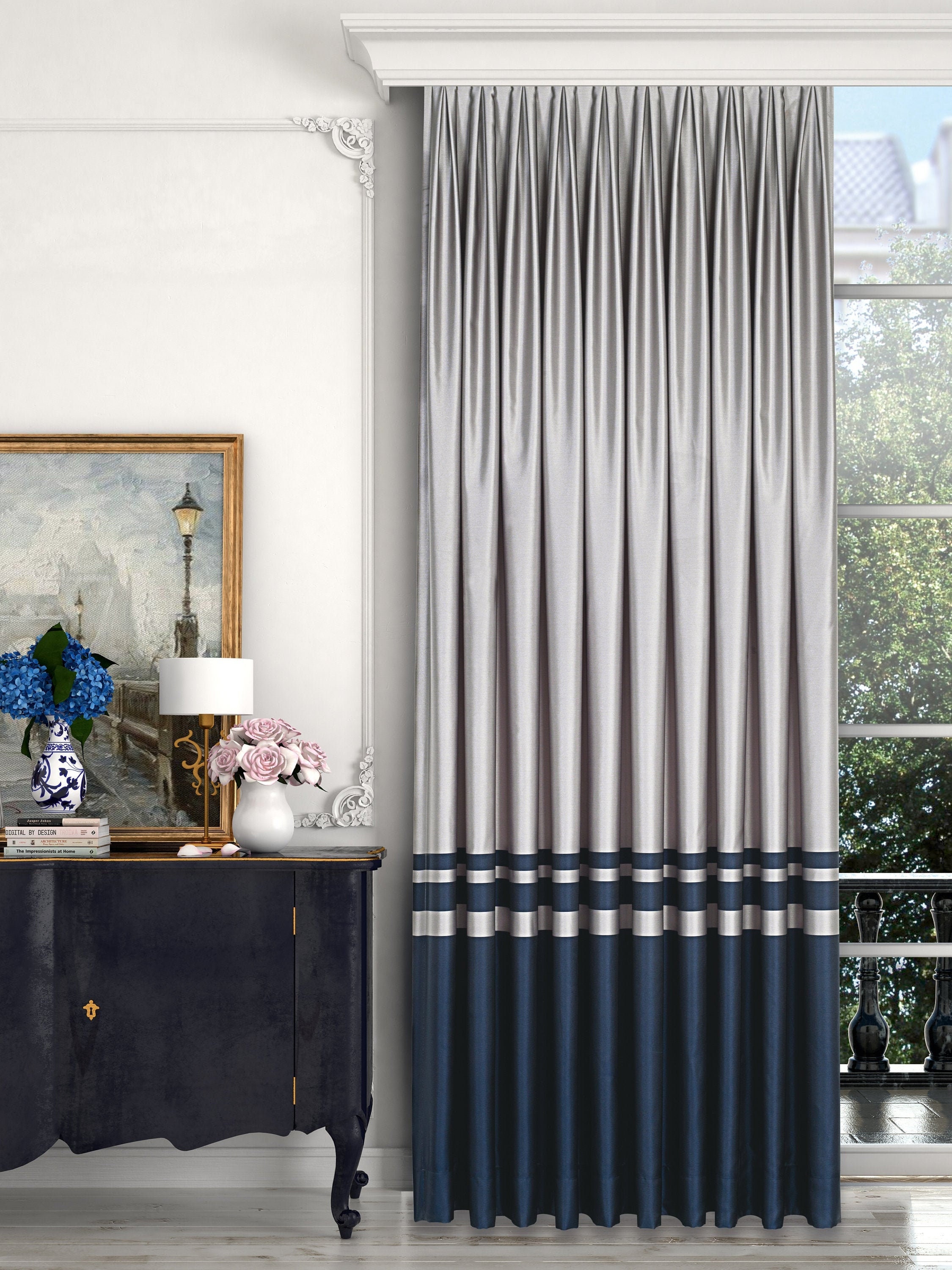 Color Block Curtain Panels 2 Multicolor Drapery Panels Etsy Uk